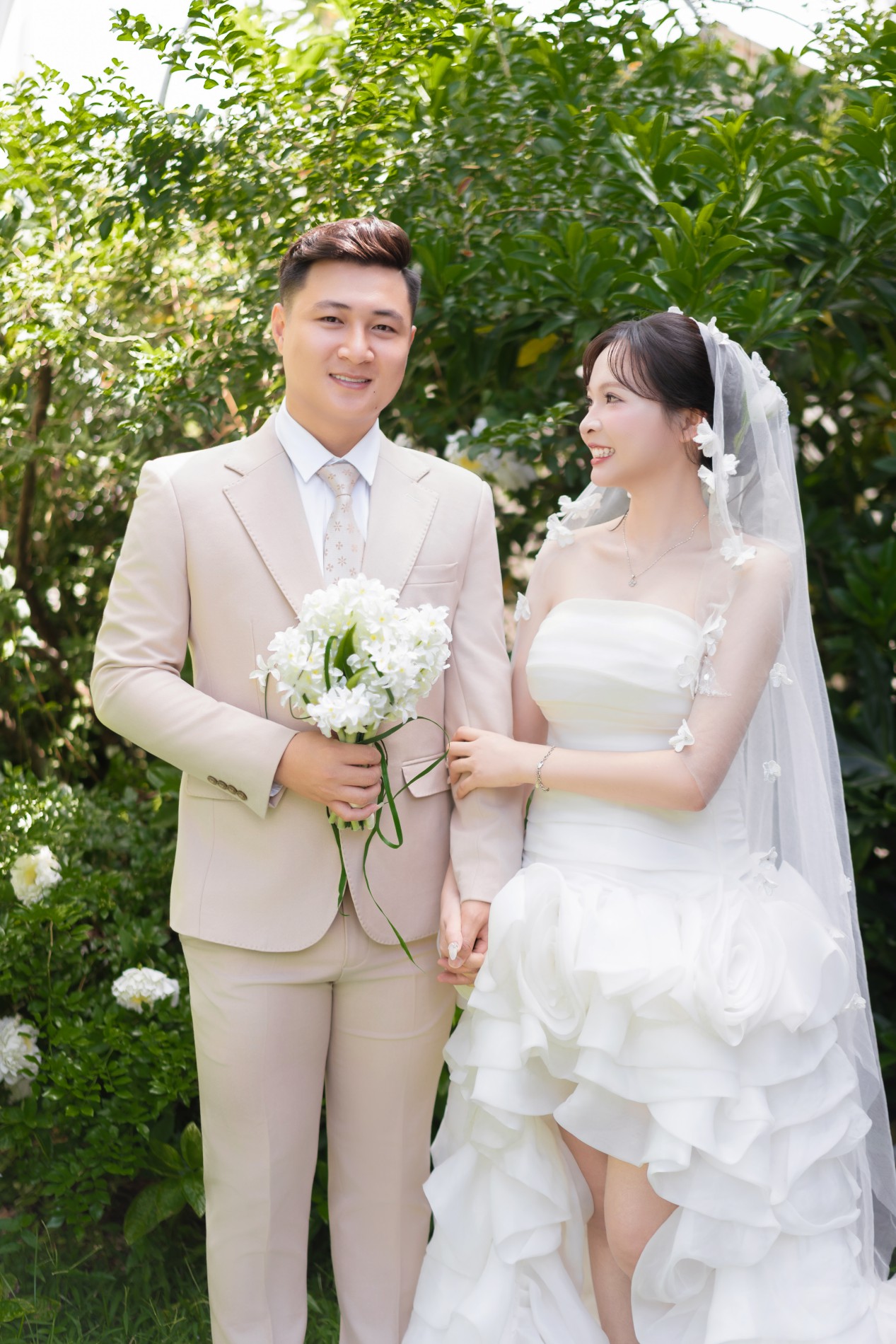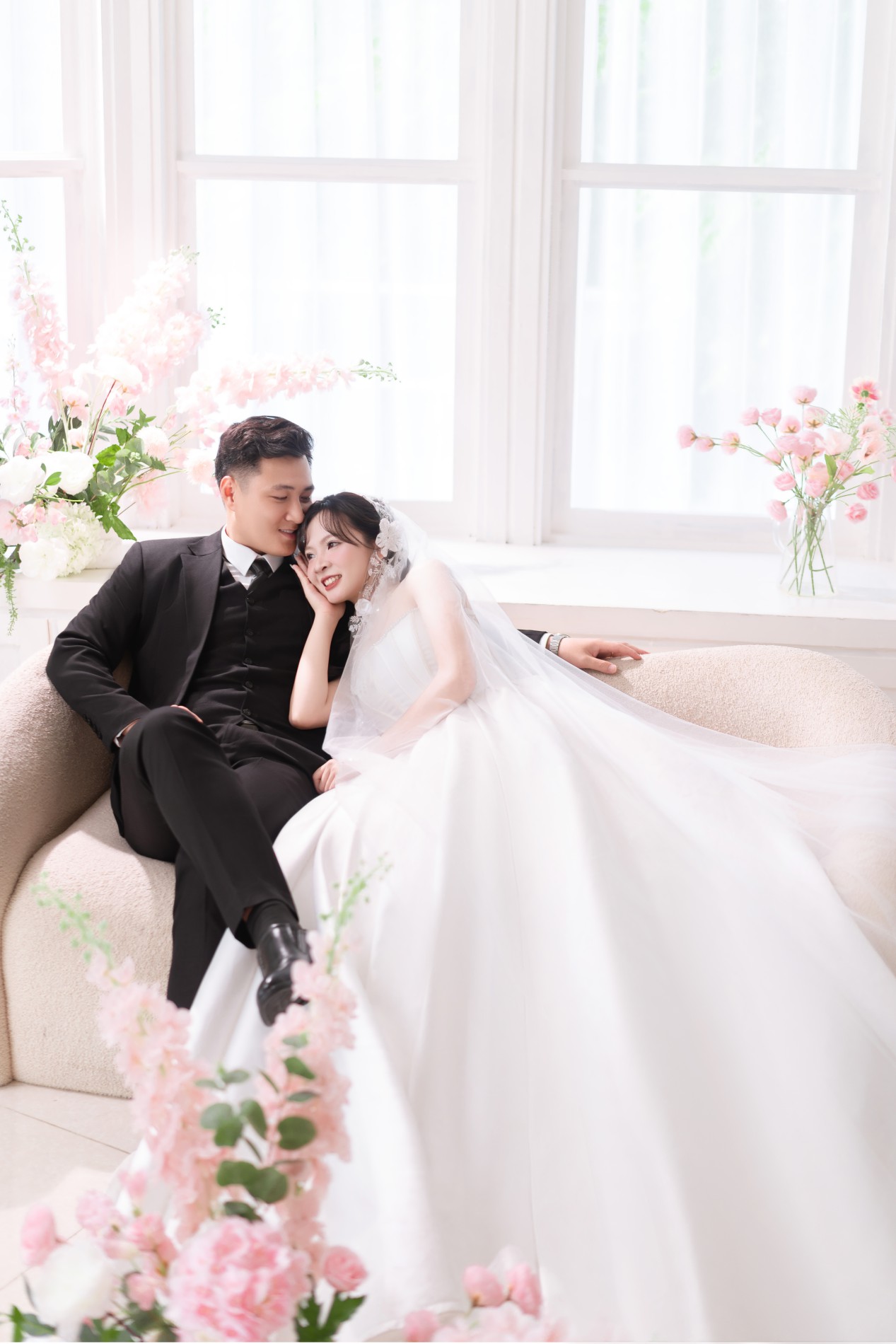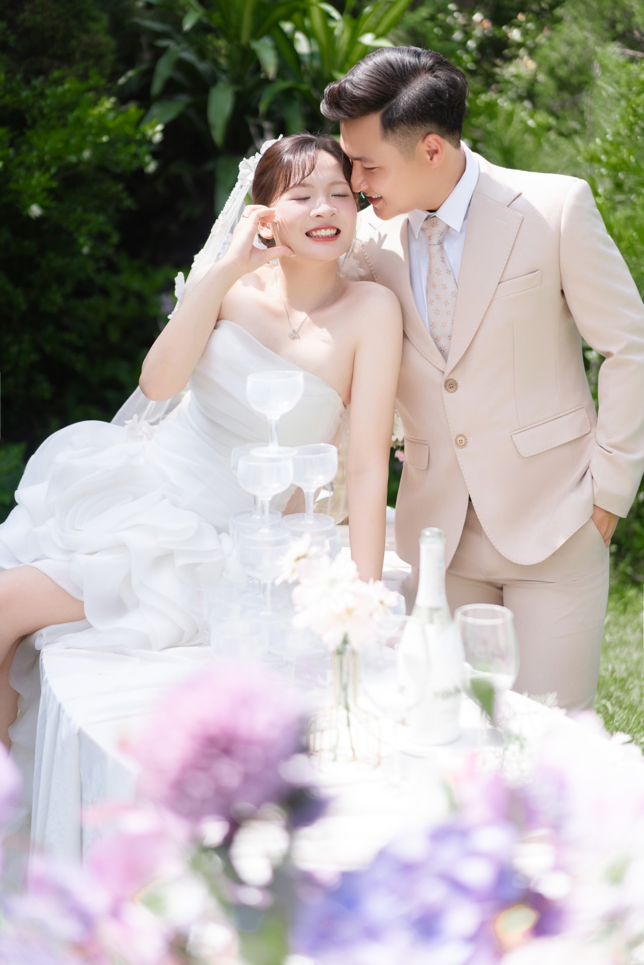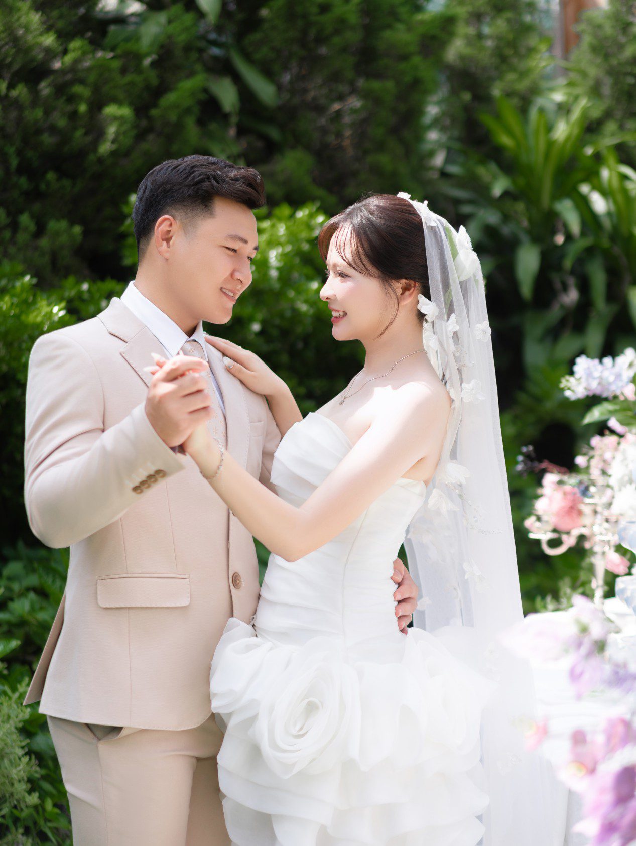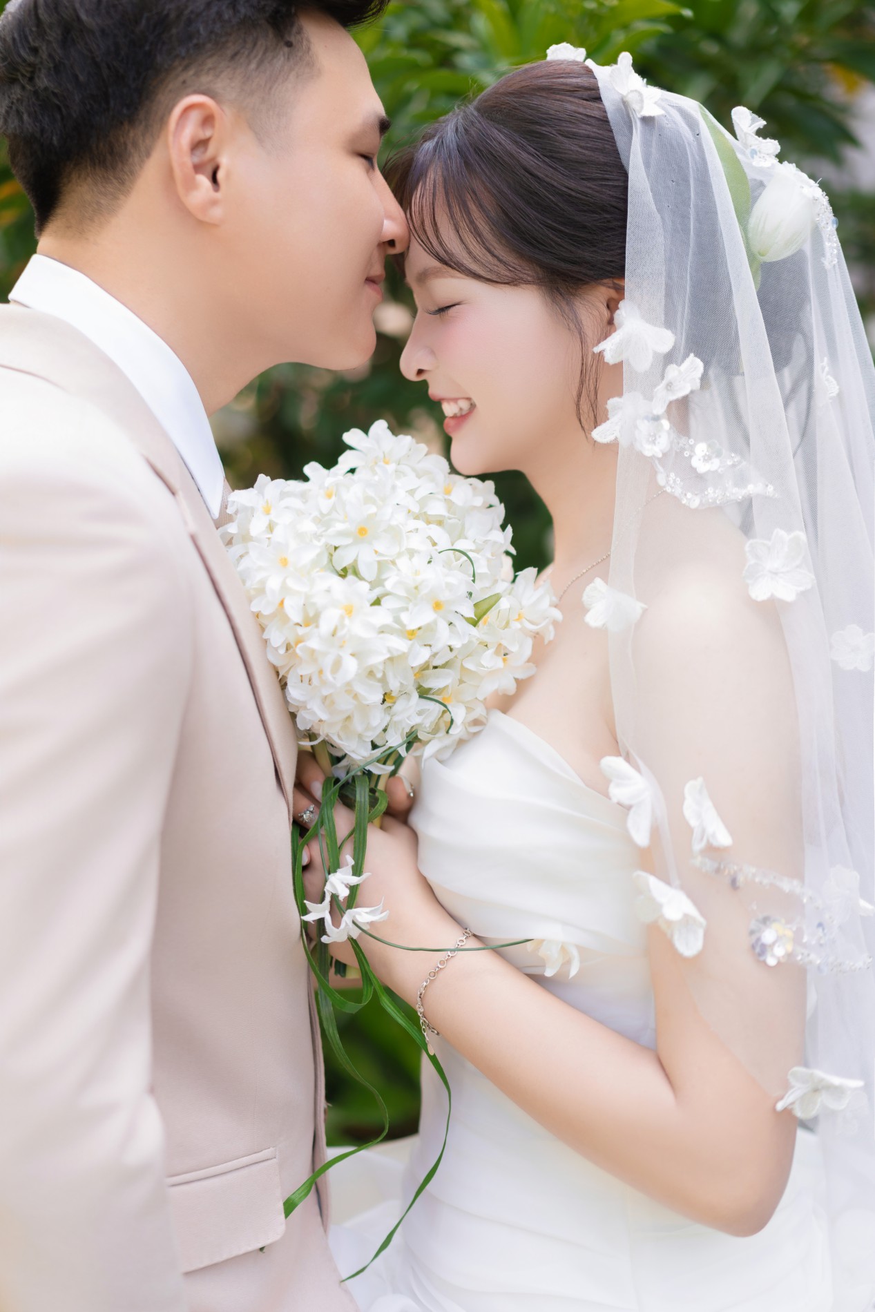 Chú rể rất đẹp trai, nụ cười của chú rể như ánh nắng, sưởi ấm, làm cô dâu đắm say, chú rể luôn tinh tế, quan tâm cô dâu, luôn tạo bất ngờ khiến cô dâu thấy rất hạnh phúc. Luôn ở bên và là bờ vai vững chắc cho cô dâu.