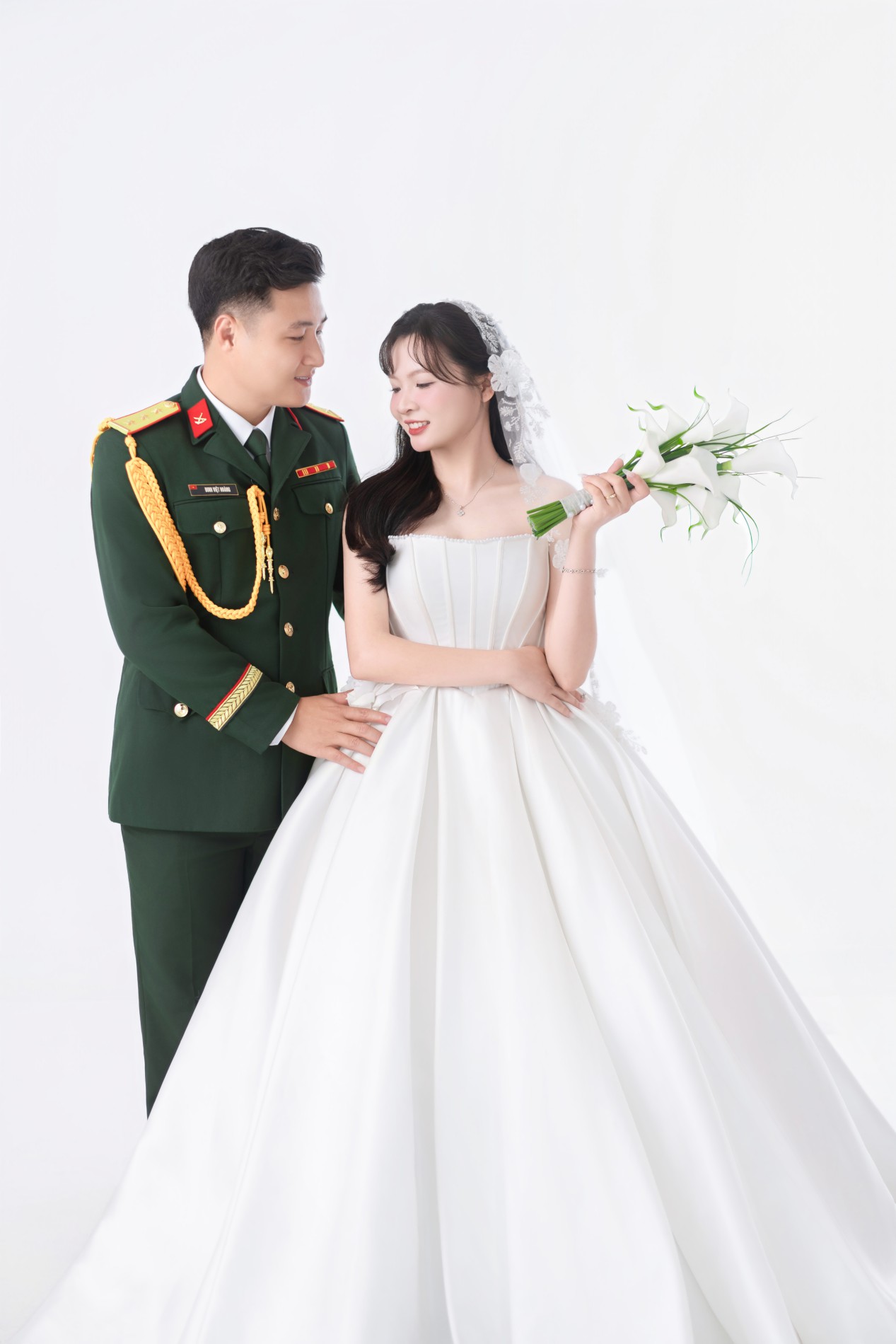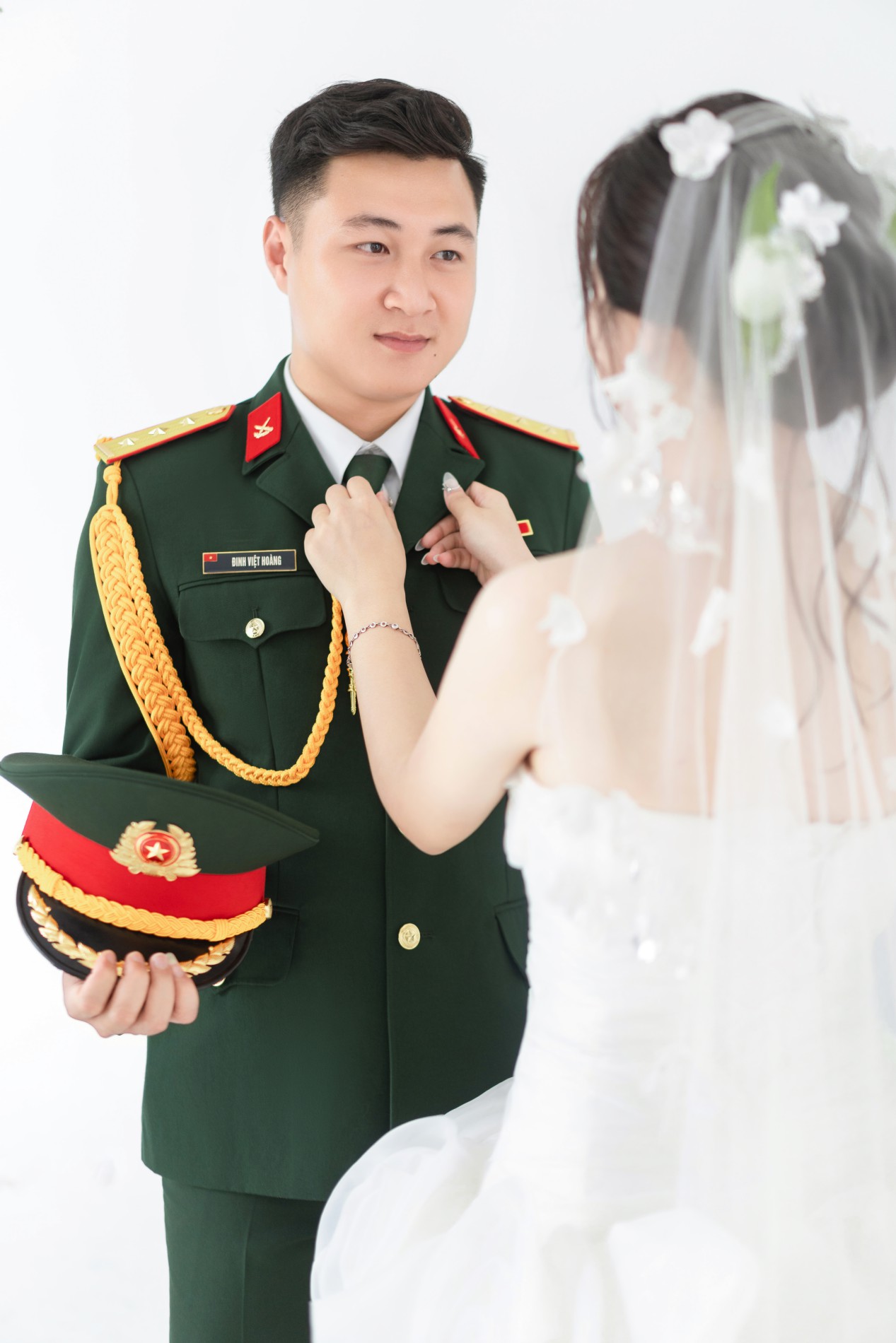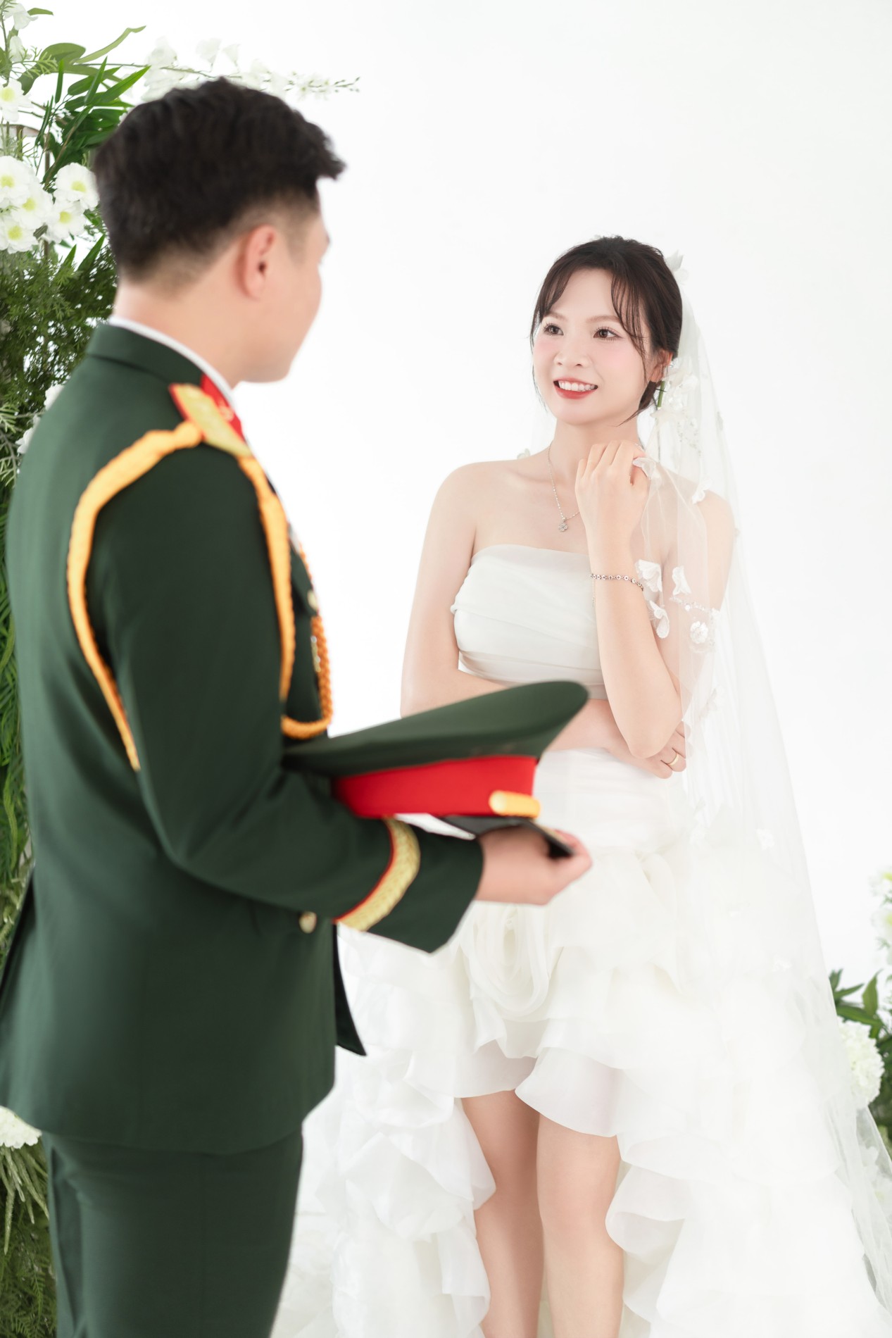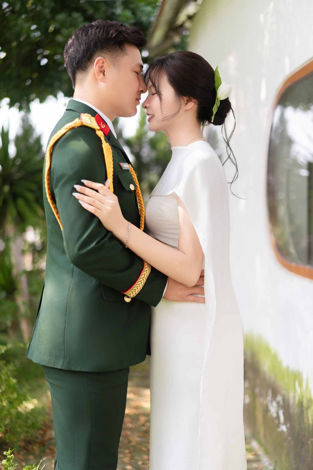 Chú rể rất đẹp trai, nụ cười của chú rể như ánh nắng, sưởi ấm, làm cô dâu đắm say, chú rể luôn tinh tế, quan tâm cô dâu, luôn tạo bất ngờ khiến cô dâu thấy rất hạnh phúc. Luôn ở bên và là bờ vai vững chắc cho cô dâu.